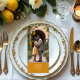 Designed especially for wedding seating table cards, this design is ideal for indicating guest seating in a clear, stylish, and visually coordinated way. Its ornamental and decorative style integrates seamlessly into the overall wedding décor, making it a perfect choice for outdoor weddings, summer celebrations, or events where refined visual details play a central role.