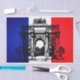 Papel tecidular com bandeira francesa e imagem do Arc de Triomphe.