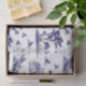 Adicione um acento bonito e elegante a seu presente da codorniz: um teste padrão azul e branco do toile-estilo enchido com as codornizes do norte.