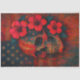 Seda Caveira e Hibiscus no Papel de Decoupage Vermelho
