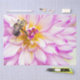 Seda Dália Branca E Rosa Com Papel Tecido De Abelhas