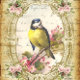 Seda Decoupage de Papel Antiquado de Pássaro Azul e Flo