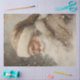 Papai Noel, chapéu bege, casaco bege, neve caindo, retrato de inverno, cena festiva, espírito natalino, Papai Noel único, magia de Natal, ilustração sazonal,