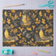 O papel de excelente para desacoplamento ou empacotamento de presentes apresenta um design completo de átrios de vidro de dentro de vidro amarelo-ouro e verde-sábio sobre fundo preto para um impressionante contraste. Fabuloso para um amante de plantas, jardineiro ou um cottagecore ou estético boho.