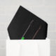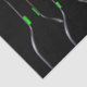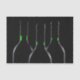 Uma silhueta de três garrafas de vinho preto com rótulos verdes que brilham no escuro.