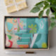 Este lenço de papel alegre retro da festa na piscina caracteriza quatro beefcakes hunky que têm uma estadia velha alegre enquanto batem o calor do Palm Springs lounging ao redor a água azul de turquesa de sua Bumerangue atômico piscina dada forma. A arquitetura moderna do meio século na casa de pedra fabulosa, alaranjada é claramente bens imobiliários principais, dados a vista das montanhas no fundo. Um sol amarelo do starburst brilha brilhantemente no céu de turquesa assim que você pode ver cada detalhe encantador--dos flamingos kitschy, cor-de-rosa aos anos 50 listrados, cerca ventoso dos blocos. E naturalmente que casa do Palm Springs estaria completa sem uma palmeira?
