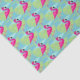 Flamingo cor-de-rosa lunático bonito em uma piscina de água com papel de envolvimento tropical do tecido das folhas de palmeira. Arte gráfica e design originais por Sarah Trett www.sarahtrett.com para www.mylittleeden.com no zazzle.