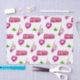 Lenço de papel de empacotamento bonito em cores cor-de-rosa e verdes com ilustrações de cor da água.