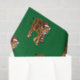 Um desenho de um tigre dos desenhos animados que vestem um chapéu de Papai Noel e de um lenço em torno dele é pescoço.