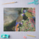 A colagem maravilhosa de belas artes do vintage de pássaros do papagaio do Macaw, de flores da orquídea e de plantas tropicais com uma floresta tropical durante uma estação das chuvas enevoada no fundo está neste lenço de papel da floresta tropical. As imagens são dominio público devido aos direitos reservados expirados. A colagem é por mim.