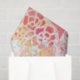 Este design colorido foi feito usando a pintura acrílica e uma placa de impressão do gelatin. A paleta de cores vermelha, alaranjada, e azul é morna e alegre, fazendo a este lenço de papel uma grande escolha para envolver os presentes que estarão para fora e serão observados. Igualmente seria grande nos projetos do artesanato, decoupaged em molduras para retrato ou em outros artigos decorativos.