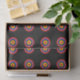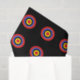 os círculos coloridos brilhantes em um teste padrão do alvo do olho de touros em um fundo preto fazem este lenço de papel original e do divertimento.