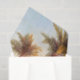 A pintura lindo das belas artes do vintage de uma paisagem tropical com palmeiras e de um por do sol bonito em uma praia está neste lenço de papel do por do sol da praia. A imagem é dominio público devido aos direitos reservados expirados.