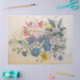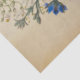 Chapa botânica com várias flores de linho (Linum spp.) e cleoma.Bonito cores num impressão antigo vintage.