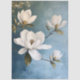 Magnolias brancas elegantes pintadas em óleo com fundo azul claro.
