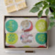 Simples círculo gráfico, bauble, branco e colorido, papel de presente de Natal embrulhado personalize com suas próprias fotos em vermelho, verde, creme e branco.