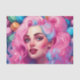 Encaixe seu doce dente com esta design encantadora! Uma jovem alegre sorri enquanto se senta no meio de uma coleção colorida de macarões cremosos. Seu cabelo é tingido de uma vibrante sombra de rosa desaparecendo em azul-céu, combinando com as matizes pastéis das guloseimas ao seu redor. As pilas dos biscoitos franceses pequenos podem ser vistas em tons delicados de rosa, menta, limão e muito mais. Traga um pop de cor e chorão para o seu espaço com este papel atraente, perfeito para artesanato ou decoração doméstica. Quer seja usado como papel de rascunho, cobrir de notebook ou arte em parede, ele adiciona um talento feminino divertido.