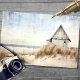 Embarque a beleza de uma pequena casa pitoresca de praia em meio à areia, grama alta, e o oceano neste belo papel de dissociação. Elevem suas criações com esta obra-prima tranquila e artística em matizes suaves e silenciosos, lembrando uma pintura.