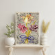 Tulipas listradas amarelas, vermelhas e escuras - magníficas Tulipas listradas holandesas com folhas de ouro reunidas num buquê amarrado com delicada fita de veludo roxa. No fundo, podemos ver documentos e dotações antigos e meio-encurralados. Folha de tecidos de descolagem floral da efemia da Vintage.