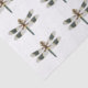 Lenço de papel da libélula do vintage. As libélulas cobrem este papel de embrulho decorativo em um teste padrão de repetição bonito. As libélulas do vintage são desenhados mão & pintado e os trabalhos de arte são de um livro antigo da entomologia. Cada libélula tem as asas listradas verdes e amarelas e um corpo azul, amarelo, e marrom.