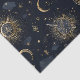 Envolva seus presentes em um pouco de magia cósmica com este padrão celestial dourado sobre fundo naval. Apresentando luas crescentes, sóis radiantes e estrelas cintilantes, este design é perfeito para amantes de tarot, observadores de estrelas e sonhadores. Ideal para aniversários, celebrações espirituais ou qualquer admirador do céu noturno.