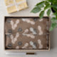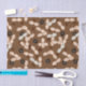 Ossos do Cachorro-Rawhide misturados com estampas de filhotes pretas e marrons em fundo castanho-claro. O design é um revestimento de tecido excelente para presentes de filhotes em qualquer altura do ano. Os ossos são criados em duas cores. Alguns ossos têm palavras gravadas nos ossos, outros são simples. As patas pretas são biseladas e levantadas. As patas marrons estão estampadas sobre o fundo.
