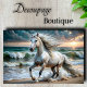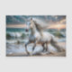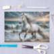 Cavalo branco majestoso na praia dramática. Transforme móveis costeiros e aumente o valor e a beleza. Perfeito para casas de praia. Perfeito para: Paredes costeiras Decoração da casa de praia Salas de salvação mesas de entrada Monitores marítimos de cor: Pérola + Teal + Areia Oceânica + Azure Branco + Onda Dourada + Teclas de tempestade: Movimento dinâmico Ondas do oceano Cena de praia Luz solar Flutuante