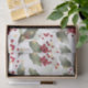 Papel de embrulho de presente de Natal. Esta design apresenta folhas verdes e ocas, bagas vermelhas e terras leves.