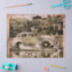 Foto antiga de canoagem de férias e viagem de carro. Enlouqueceu um pouco com texturas e cobertura de cor de rosa.