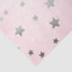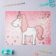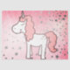Papel de tecido presente com imagem de um Unicórnio contra fundo estrelado rosa.