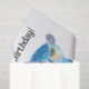 A coruja de abstrato em tons de azul e roxo é impressa em papel de tecido personalizado. O texto diz, Feliz Aniversário, que pode ser personalizado. Obrigado por comprar em CherylsArt no Zazzle.