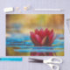 Uma bela máscara de rosto mostra uma fotografia de uma flor de lótus vermelha flutuando na água traz um senso de calma. Desligamento, embrulho de presente... as possibilidades são infinitas.