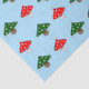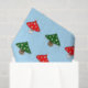 Um padrão de cartoons festivos cogumelos. Um tem boné como uma árvore de Natal e o outro tem boné como um chapéu de Papai Noel. O fundo é azul-gelo.