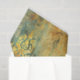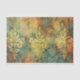 Este é um padrão decorativo ornamentado em tons de ouro, turquesa e ferrugem. O design apresenta um damasco intrincado, simétrico ou arabesco que se assemelha a folhas estilizadas de acanthus, pergaminhos e elementos florais dispostos em colunas verticais. Os padrões têm uma aparência afligida, meteorológica, com áreas desbotadas e vestidas, revelando turquesa e ferrugem por baixo da camada superior de ouro. Este efeito patina envelhecido dá ao design uma sensação antiga ou vintage.