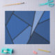 Inspirado pelo vidro colorido, este na moda geométrico contém polígonos em vários tons de azul esboçado em preto. Um triângulo azul claro desliza do canto superior direito com um conjunto de quadrangulares azuis progressivamente mais escuros e outras formas espiralando ao redor dele da luz para a escuridão. Duas formas azuis escuras movem o lado esquerdo do design original. Imagem criada digitalmente. Copyright © Claire E. Skinner. Todos os direitos reservados.
