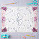 Papel branco com efeito prateado, chaves em forma de coração e corações, com rosas cor-de-rosa e ameixa e ranóculo.