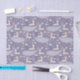 Baleias baleias e coelhinhos reproduzindo padrões repetidos com cinzas de cartoon baleias nadando e coelhos voadores vestindo um cachecol verde, corações cor-de-rosa, estrelas de rabisco, pássaros azuis vestindo um cachecol rosa, folhas compostas azuis em queda, flores e nuvens de rabisco. Colocado em um violeta roxo.