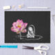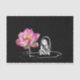 Papel de tecido noturno falso com imagem de uma rapariga sentada numa almofada de lírio por uma flor de lótus rosa.