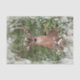 Uma cabeça de veado rodeada por galhos com neve. Uma folha de música verde ao fundo.