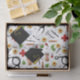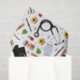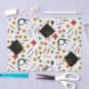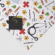 Um padrão de design com temas médicos criativos que inclui suprimentos de saúde e bonés de formatura.