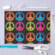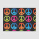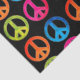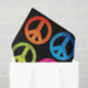 Sinais de paz neon brilhantes contra o papel de fundo preto de papel-presente.