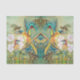 pintura de três aves e três abelhas em amarelo azul verde e vermelho faz este divertido papel de tecido natural com flores e cogumelos