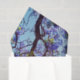 Foto em flor de cheio é uma árvore de Jacaranda roxa num design de tinta a óleo