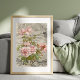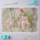 Um galho de um arbusto cor-de-rosa florescente cheio de rosas delicados e ainda não aberto, além de coberto com folhas brilhantes verdes e brilhantes. Esses papéis já foram decorados com ornamentos decorativos no estilo barroco. Desligar papel de tecidos. Este documento será perfeito para seus projetos de artesanato