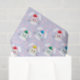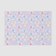 Um papel de tecido de Páscoa roxo e bonito com o padrão de rostos de coelho e pegadas. © ArianeC Ilustrações — Todos os direitos reservados