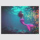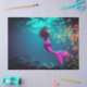 Papel de tecido dotado com imagem de uma Sereia com cauda rosa e peixe amarelo e rosa debaixo d'água no mar.