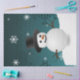 Preencha os sacos de presente de Natal com este lindo Teal Snowman Winter Scenery Christmas Tissue Paper. O design de papel tecidular apresenta um feliz boneco de neve em uma cena de ventania de neve contra um fundo teal adornado com flocos de neve de cor correspondente. Itens adicionais de presentes e feriados disponíveis com este design também.