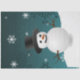 Seda Teal Snowman Winter Scene Papel para Tecidos de Na