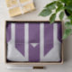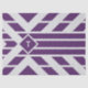 Adicione um toque especial ao seu presente com papel de tecidos geométricos de padrão na moda roxo e cinza. Quadrinhos roxos e listras apontam para um diamante roxo que contém um monograma personalizável. O fundo é cinza leve. Coordene seus presentes com fita correspondente, papel de empacotamento e adesivos: imagem criada digitalmente. Copyright © Claire E. Skinner. Todos os direitos reservados.