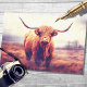 Aproveite esta majestosa Vaca Highland em um cenário nebuloso em papel de desvinculação! Sua camada de textura do tecido adiciona um toque de sofisticação aos seus artesanatos. Abraçar a magia nebulosa das Highlands. Peça agora!